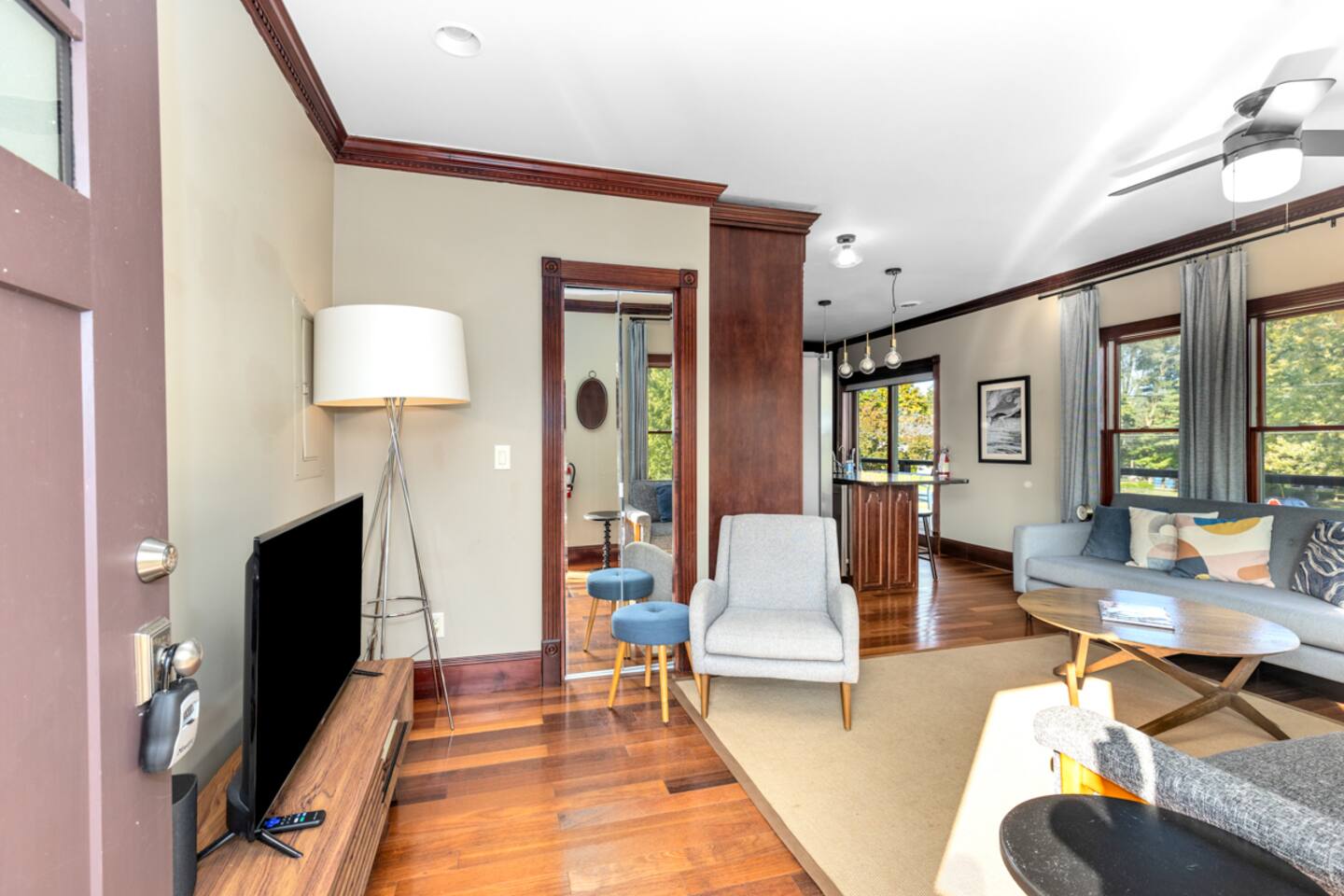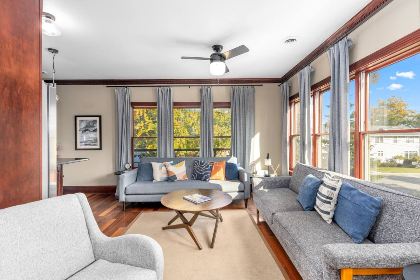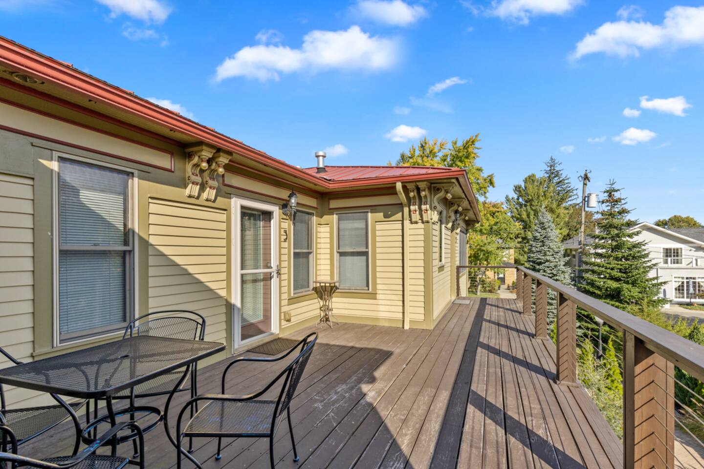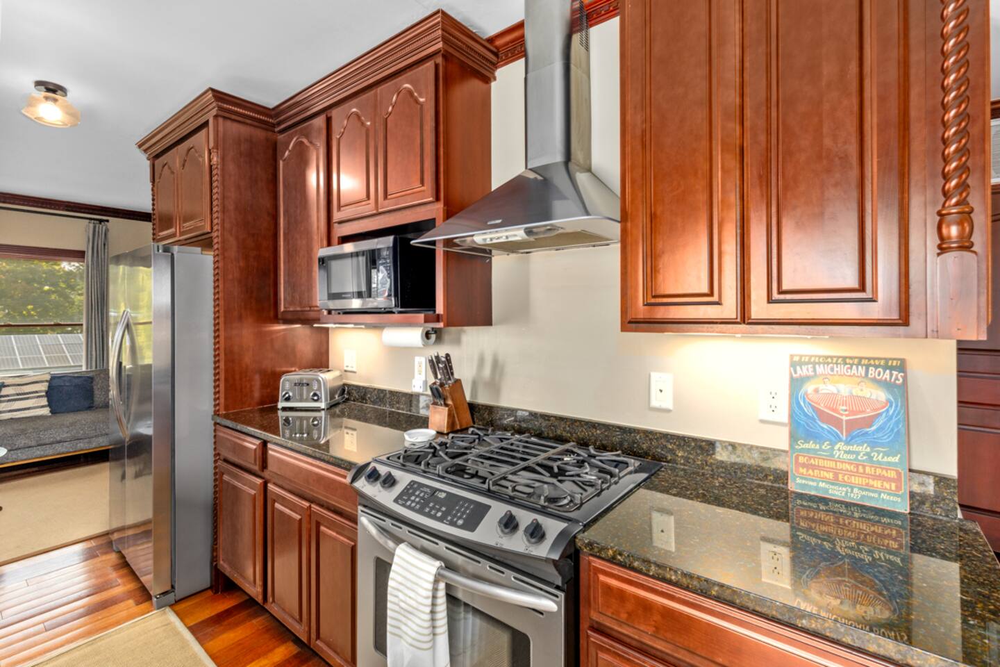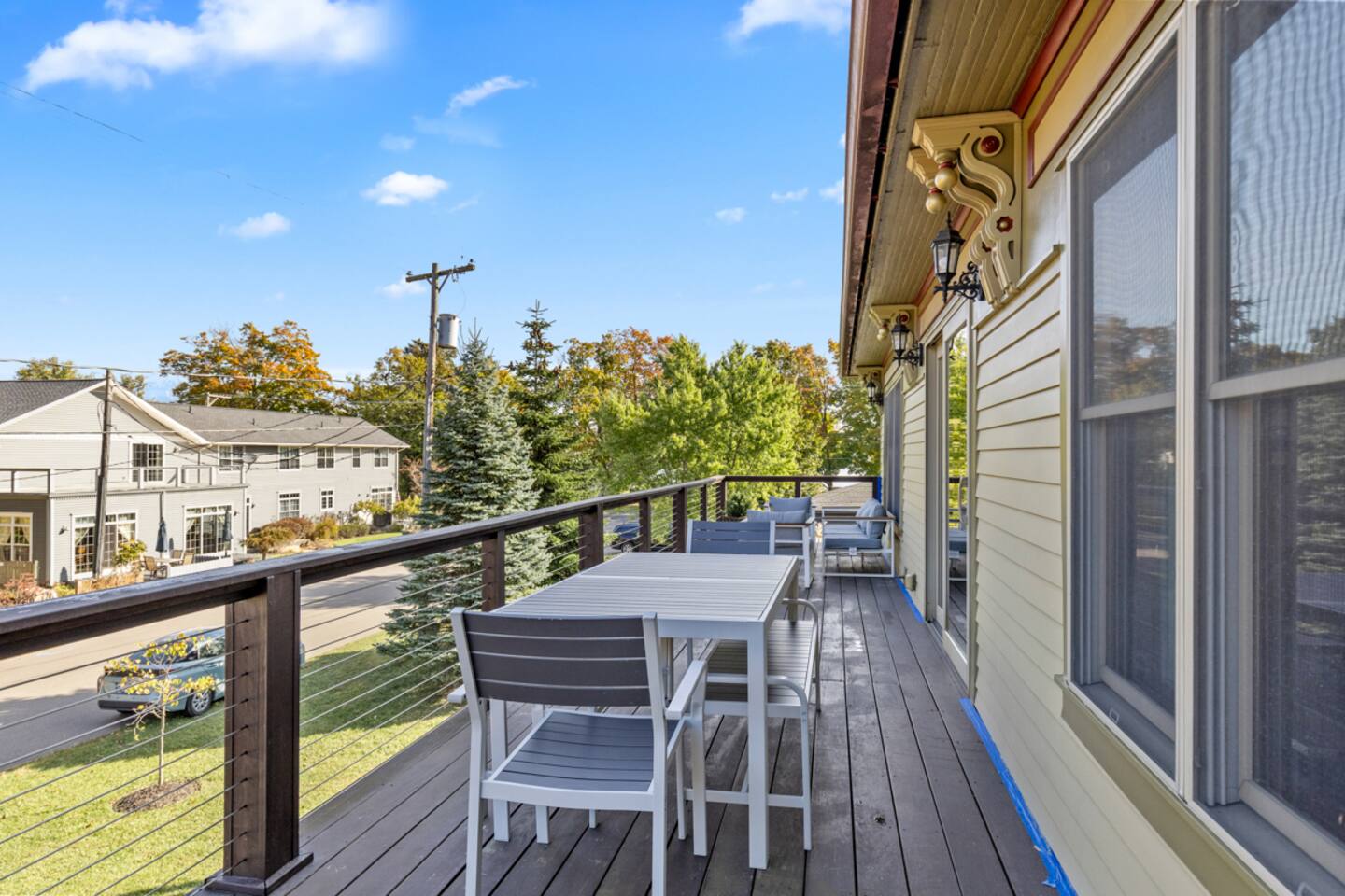 Welcome to your stunning 2-bedroom, 2-bath, upper level condo in Douglas, MI, just a short walk from vibrant Saugatuck! This beautifully renovated space blends upscale elegance with a lively community feel and sleeps 6 comfortably. The primary bedroom features a cozy king bed, while the secondary bedroom offers two queen beds. Step inside to discover thoughtful design and luxury touches throughout, including a gourmet kitchen with granite countertops and stainless steel appliances—a chef’s dream for preparing meals. Relax on the expansive private balcony with breathtaking views of Kalamazoo Lake, or unwind in the light-filled living area. Enjoy nearby dining, coffee shops, boutiques, and the charming waterfront—all within walking distance. Perfect for a year-round getaway full of adventure and relaxation. Two parking spots are included for your convenience! **Top 10 benefits of staying in Douglas, MI:** 1. **Close proximity to Saugatuck** – Walk to explore its vibrant arts scene, dining, and shopping. 2. **Kalamazoo Lake views** – Wake up to stunning lake views from your private balcony. 3. **Beaches nearby** – Relax at Oval Beach, one of the best in the Midwest. 4. **Year-round festivals** – From art fairs to wine festivals, there’s always something to celebrate. 5. **Charming downtown** – Douglas offers boutique shopping, galleries, and cozy cafés. 6. **Water activities** – Boating, kayaking, and paddleboarding on the lake are just steps away. 7. **Local dining** – Enjoy farm-to-table restaurants, casual eateries, and waterfront dining. 8. **Outdoor adventures** – Hiking, biking trails, and nature preserves surround the area. 9. **Peaceful retreat** – Experience small-town charm and tranquility, away from the hustle. 10. **Thriving arts scene** – Discover local art galleries, theater, and creative events throughout the year. This condo is the perfect base for enjoying all that Douglas and Saugatuck have to offer! Book Now! Things to know: Free high-speed WiFi Snowbird-friendly Both bathrooms feature rain/handheld showerheads No grills are allowed on this property Please be conscious of late-night noise Two parking spaces are included Pets are not allowed due to HOA restrictions. *This condo on the second floor, up a flight of stairs, and is not equipped for accessibility This property is managed by Villegas Group LLC