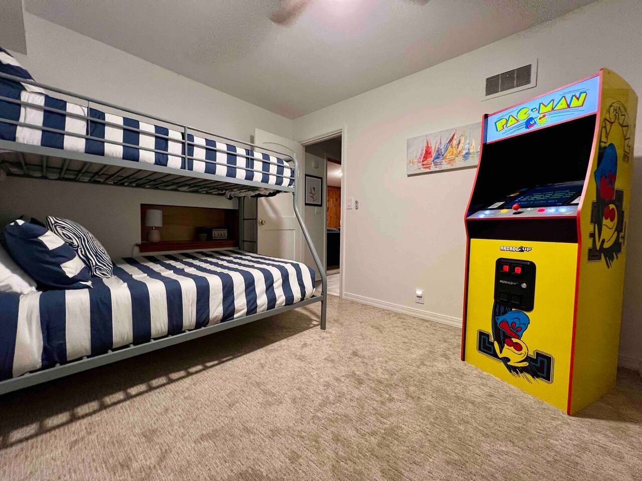 Lakefront Retreat with New Hot Tub and Arcade! Relax in our updated lakefront home, perfect for a getaway or extended vacation. Enjoy a NEW Hot Tub (2023) with seating for 7 and a fun Pac-Man Arcade. The home features 100' of private lake frontage, 4 large bedrooms, 2 spacious bathrooms, an entertainer's kitchen, and a HUGE patio for summertime fun. Boating? We have a private boat slip for up to a 30' boat and space for jet skis. Updated in 2021, 2022, 2023, and 2024. Book now!